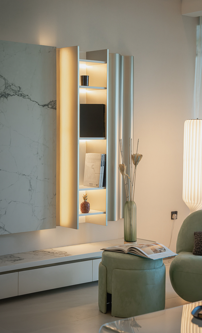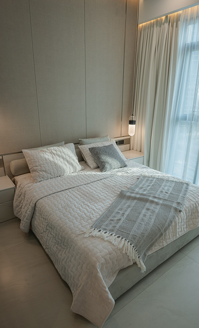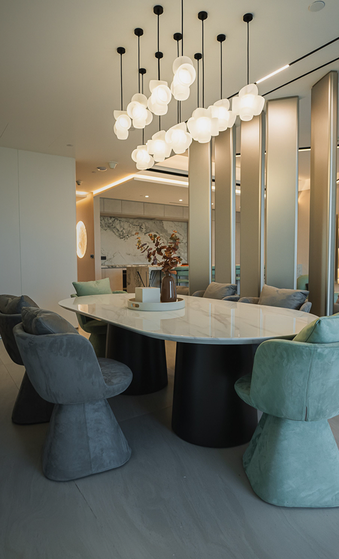 We curated furniture that feels warm and inviting, with layered materials, tactile finishes, and ambient lighting.